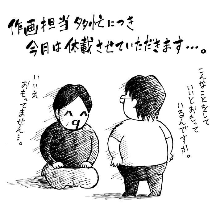 ヨコヤマの苦手なもの 美星を先頭に矯正院に意気揚々と入ってくる3人娘 美星 「せんせー、先月の水着評判良かったでしょ うわ、どうしたの?」 矯正院のベッドで ノラネコぐんだんのフォルムになって 仰向けに寝るヨコヤマ ヨコヤマ 「せっかくお時間を頂いたので 一気に確定申告を終わらせたら どっと疲れてしまいまして・・・」 月子 「私達には良く分からないけど 確定申告って大変なんですか?」 ヨコヤマ 「大変というよりもデスクワークが苦手なんですよね」 伝票(レシート)を確認するヨコヤマ 帳簿を手書きするヨコヤマ パソコンで入力するヨコヤマのカットを挿入 ヨコヤマ 「伝票の整理して帳簿作ってパソコンで入力して それでもって納税ですからねぇ、正直しんどいです」 日向 「税理士さんとかに頼まないんですか?」 ヨコヤマ 「うーん、それも有りなんですけど、 僕は簿記の資格持ってて自分で出来ちゃうんですよ」 ヨコヤマ書き文字で「出来るからって、 好きな訳じゃないんですよね」 美星 「大変なんですね、じゃあもう一回水着で 楽させてあげましょう!!」 鼻息荒く言ながら脱ぎ始めようとする美星 美星の腕を抑えて脱衣を笑顔で防ぐ日向 髪を逆立てて驚く月子 ヨコヤマ 「いやいや、今年はもう終わったんで大丈夫ですよ またそのうちお願いします」 |